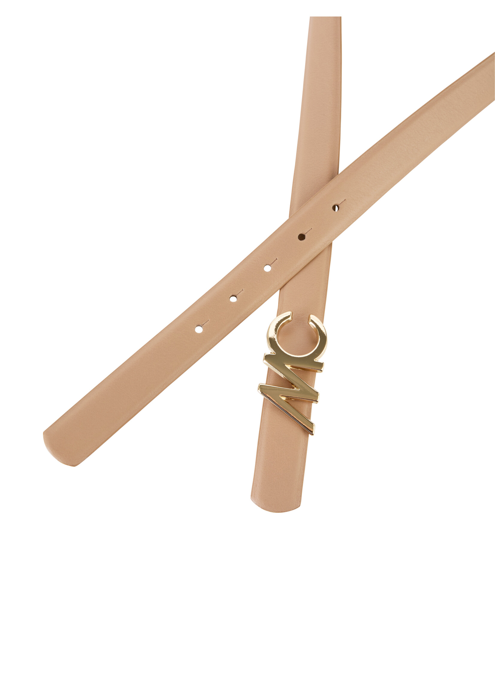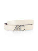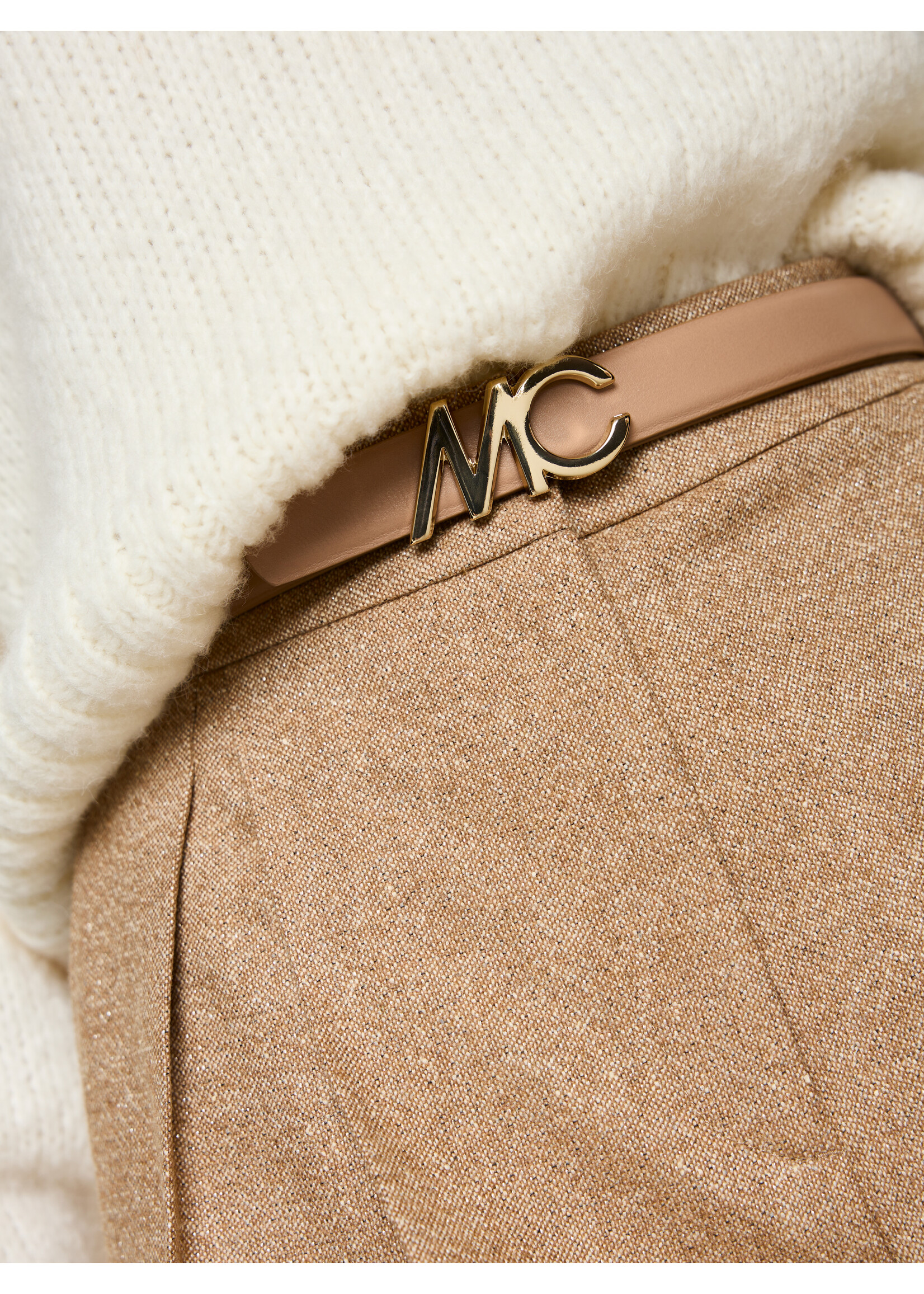 Deze smalle heupriem is het ideale accessoire voor wijde rokken en trendy paperbagbroeken. Hij is gemaakt van fijn rundleer en kan aan beide kanten worden gedragen. De metalen gesp wordt gesloten met een exclusief steekontwerp en heeft een MC-logo.